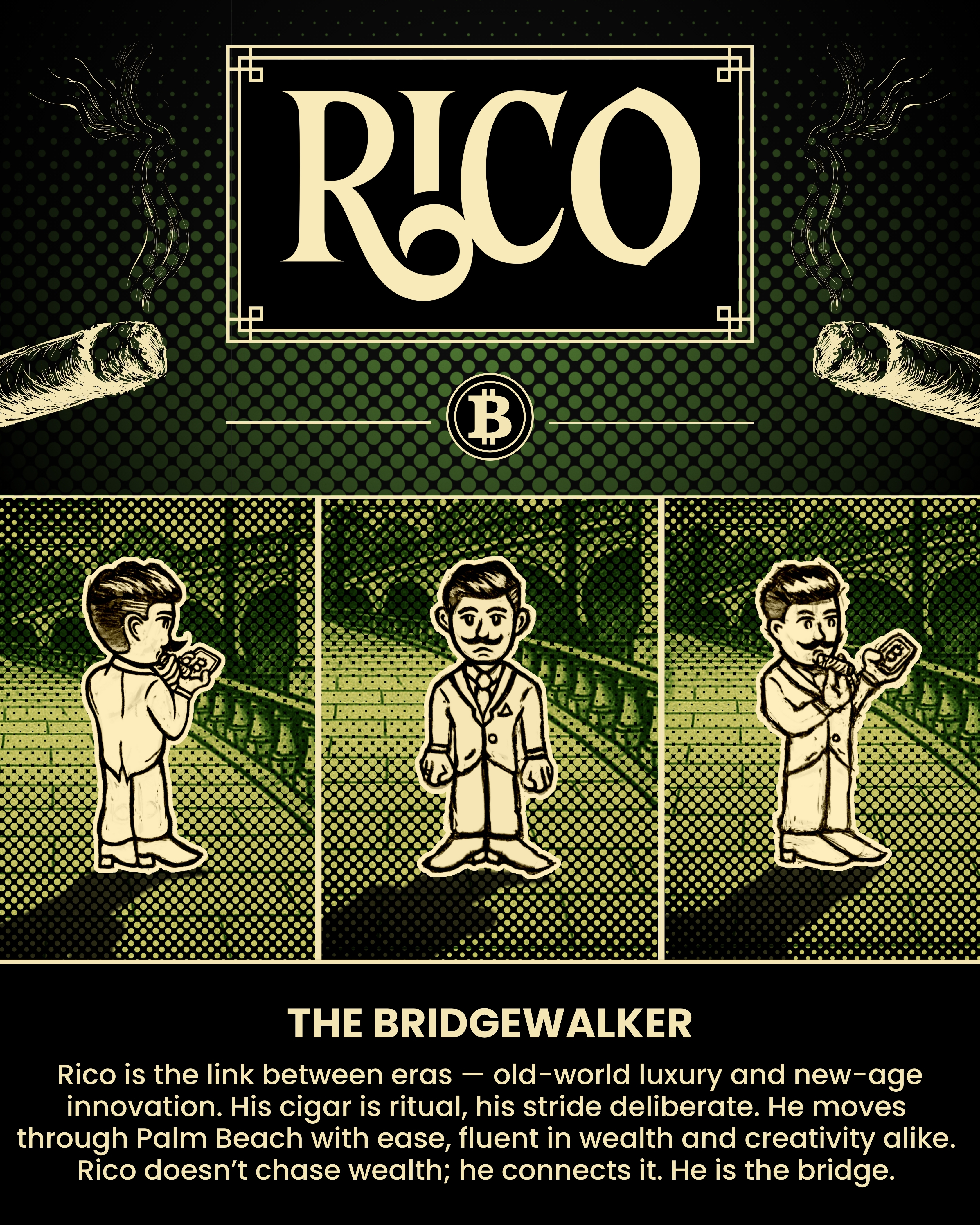 Rico the Bridgewalker represents the spirit of connection that defines The Bridge Arc — a symbol of visionaries who move between worlds, bridging business, culture, and innovation in Palm Beach. More than a name, “The Bridgewalker” is a mindset: walking the line between tradition and disruption, luxury and innovation, creativity and commerce. Rico embodies the forward energy that drives our community, where every step builds new links between entrepreneurs, investors, creators, and thinkers shaping the future of decentralized entrepreneurship.